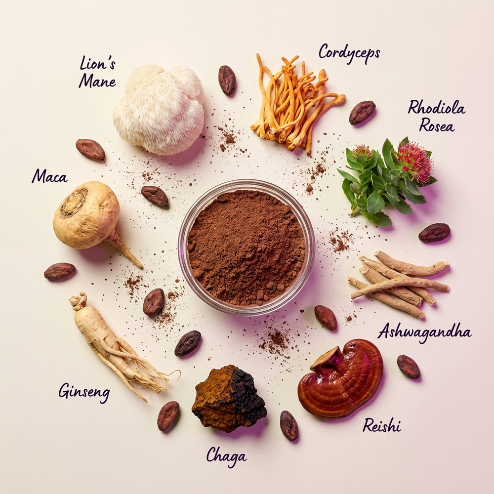 Lion's Mane · Cordyceps · Rhodiola Rosea · Ashwagandha · Reishi · Chaga · Ginseng · Maca