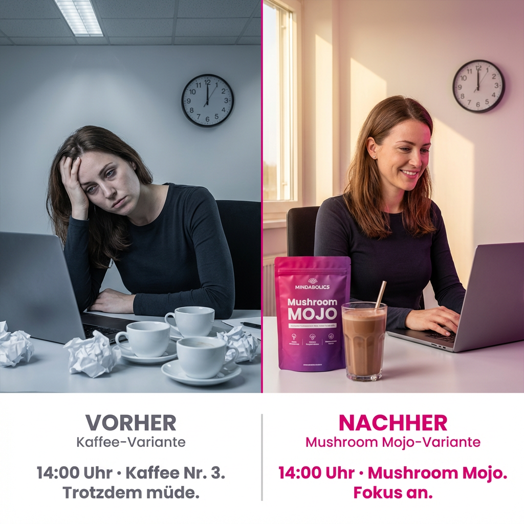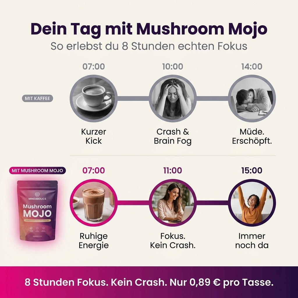 Als Softwareentwickler sitze ich täglich 10+ Stunden am Rechner. Nach dem Mittagstief war ich immer platt. Mushroom Mojo hat das komplett gefixt, ich bleibe jetzt bis abends im Flow, ohne das typische Koffein-Zittern. Lion's Mane scheint wirklich was zu bringen. Preis-Leistung top, werde definitiv nachbestellen.